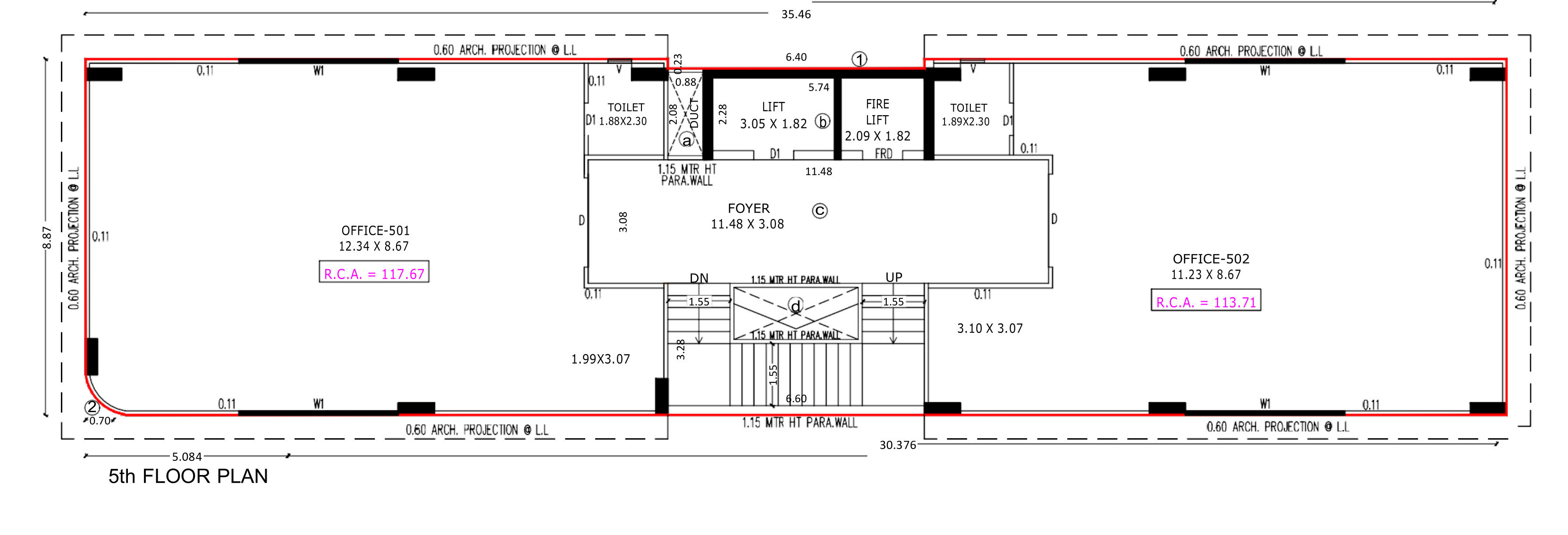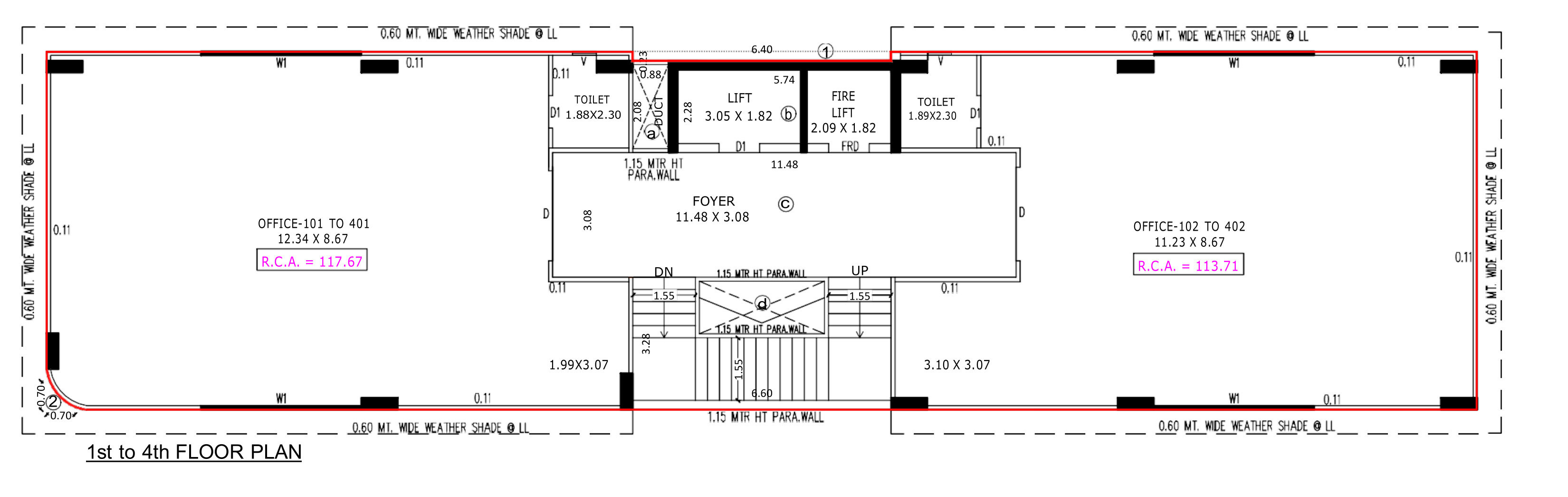Builtup area1 sq M = 10.76 sq ft