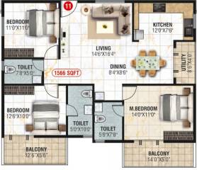 3BHK+3T (1,566 sq ft)
