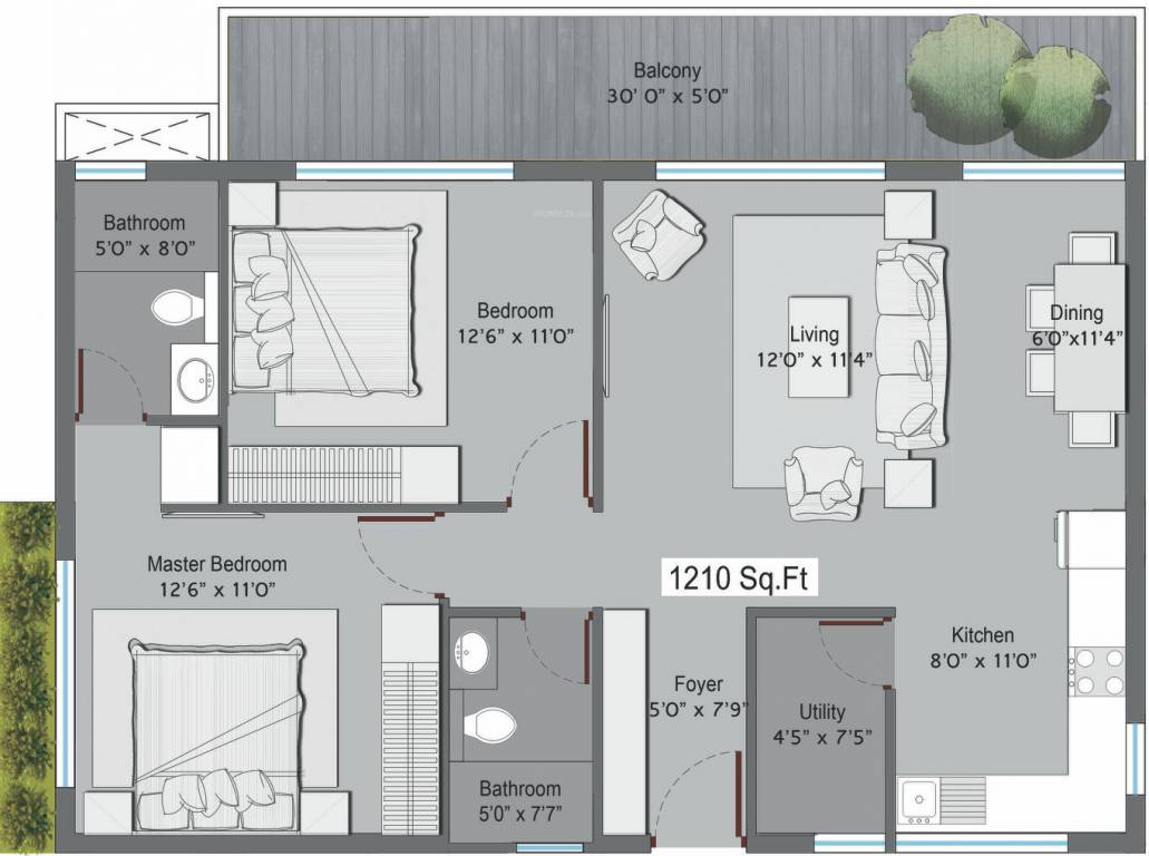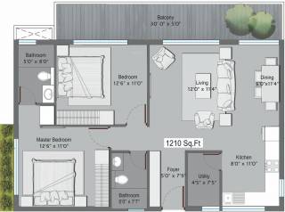 2BHK+2T (1,210 sq ft)