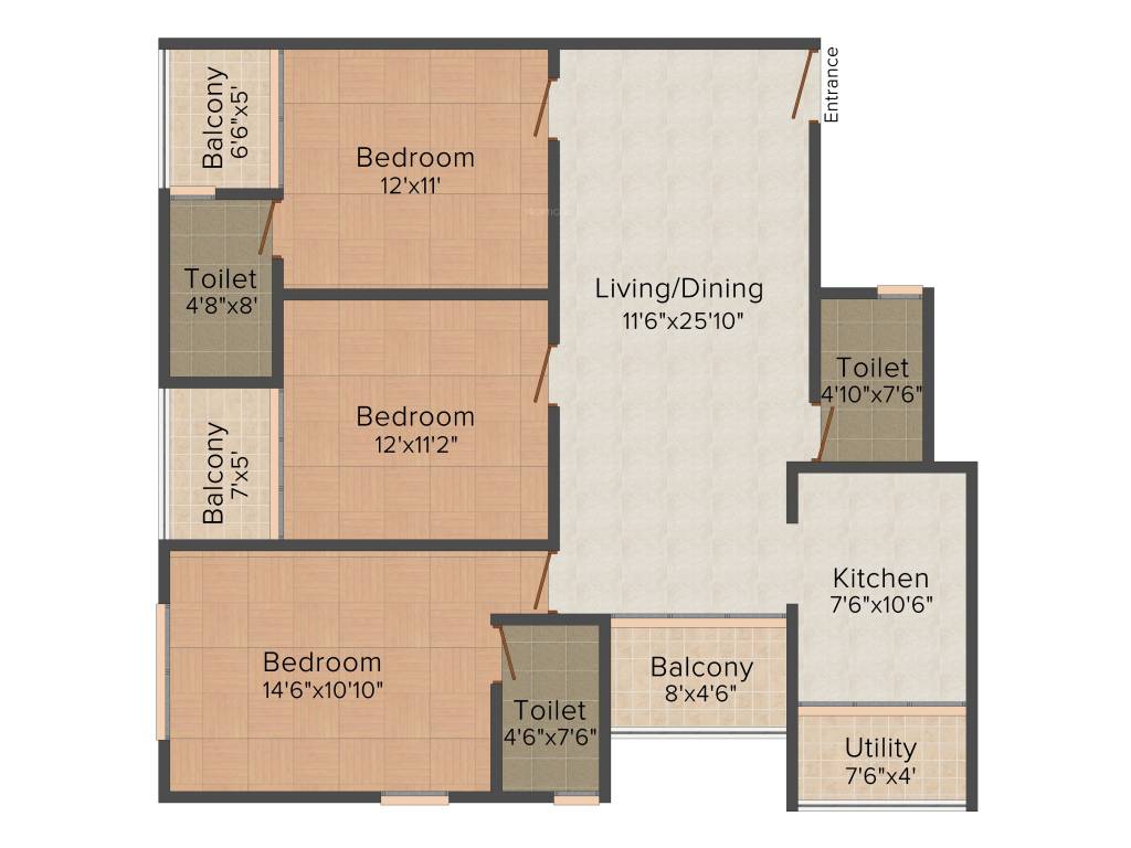 Radiant 3BHK+3T (1,250 sq ft)by Radiant PropertiesBannerghatta RoadPrice on request