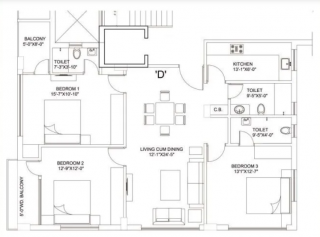 3BHK+3T (1,137 sq ft)