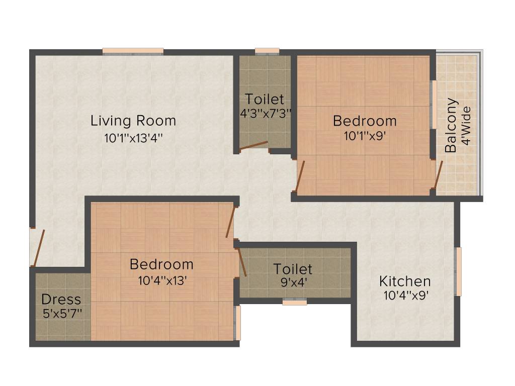 2BHK+2T (768 sq ft)