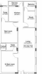 2BHK+2T (1,077 sq ft) + Study Room
