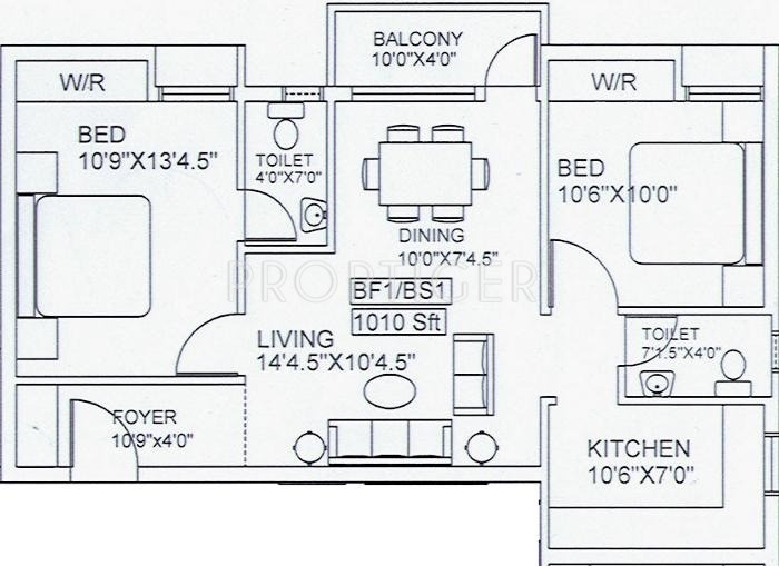 2BHK+2T (1,010 sq ft)