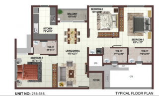 Offering 144 finest 1, 2 & 3 BHK Affordable apartments built on a Stilt+5 Floor structure.