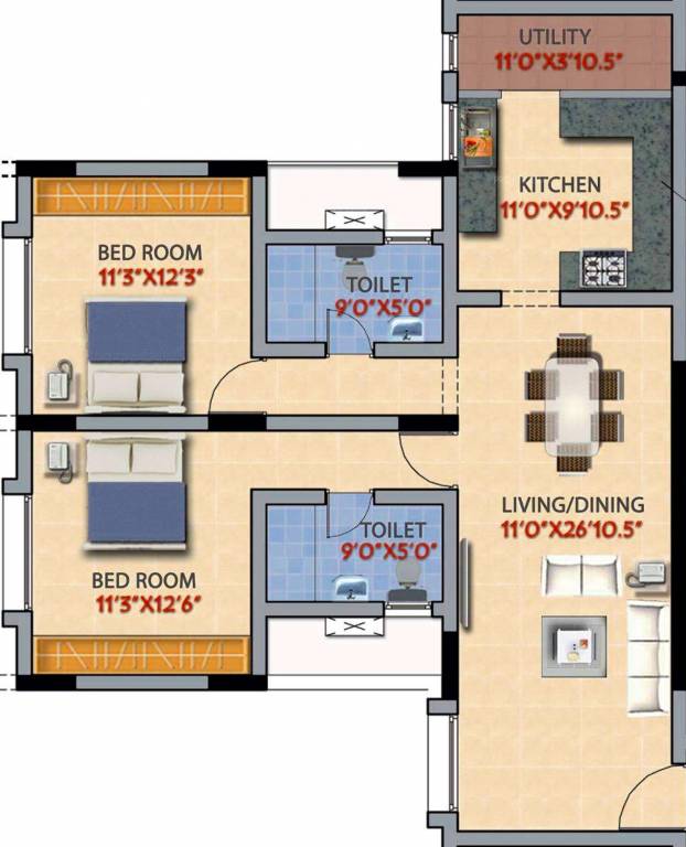 1364 sq ft 2 BHK 2T Apartment in Srivari Infrastructures Vaibhav