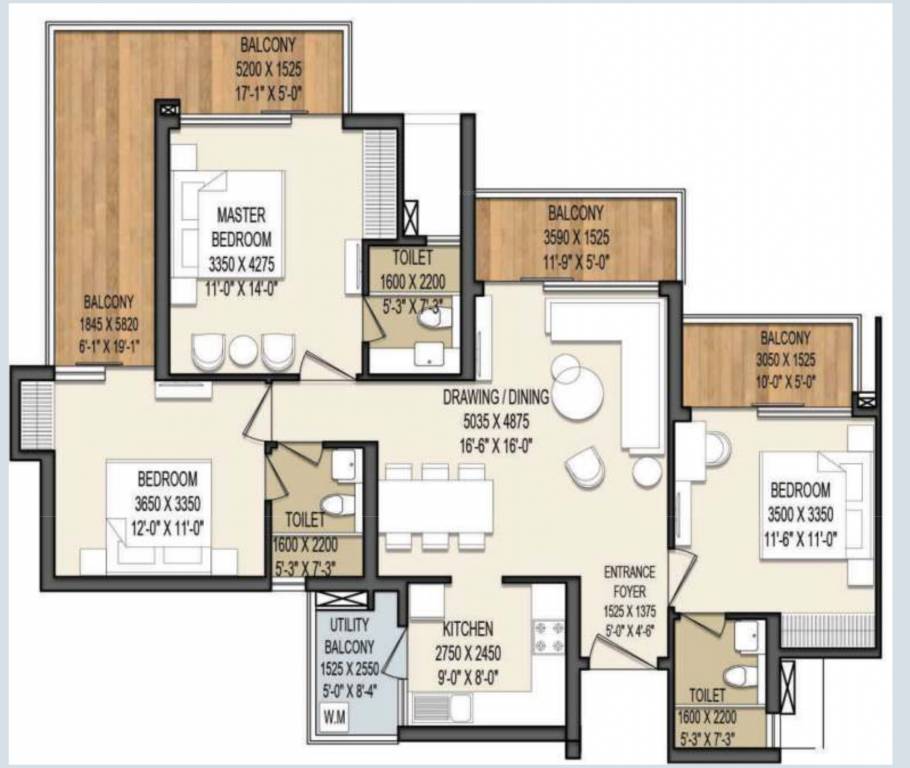 3BHK+3T (1,770 sq ft)