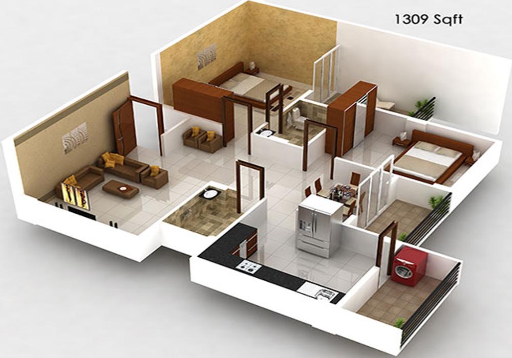 2BHK+2T (1,309 sq ft)