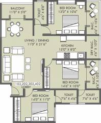 3BHK+3T (1,690 sq ft)