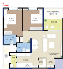 2BHK+2T (1,193 sq ft)