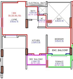 1BHK+1T (492 sq ft)