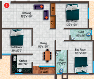 3BHK+3T (1,440 sq ft)