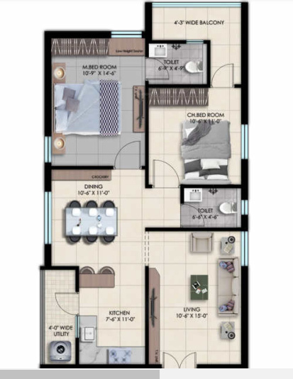 2BHK+2T (1,155 sq ft)